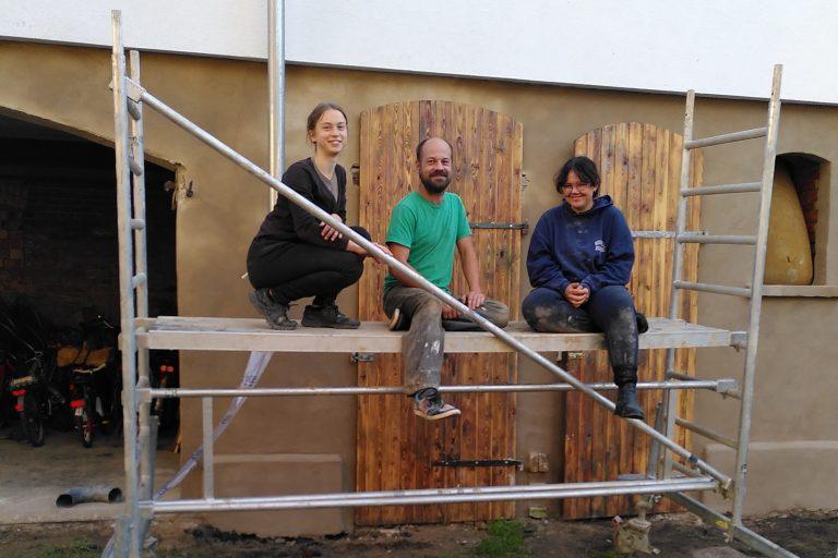 Bei uns sieht es jetzt schon ganz anders aus als noch vor wenigen Monaten. Das neue Bundesfreiwilligendienst-Team (siehe Foto) hat das Verputzen der Außenwände sehr schick gestaltet und zusammen mit den abgeschliffenen Toren und Türen (beim Workcamp im August) lohnt ein Vorbeischauen unbedingt!